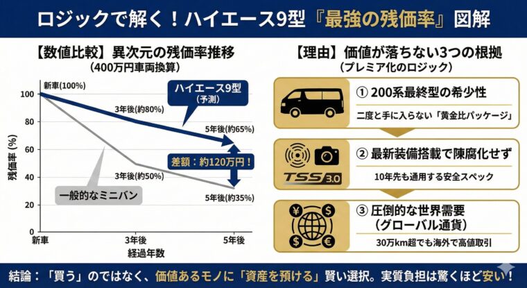 ロジックで解く「ハイエース最強の残価率」:なぜ9型は「買う」のではなく「資産を預ける」感覚なのか