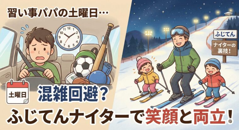 昨日、実際にこの弾丸スケジュールを実践してきたのですが、結論から言うと「土日の混雑ストレス」を一切感じることなく、家族全員が最高の満足度で週末を締めくくることができました。今回は、忙しいパパのためのふじてんナイター攻略法を、私のリアルな体験をもとにご紹介します。