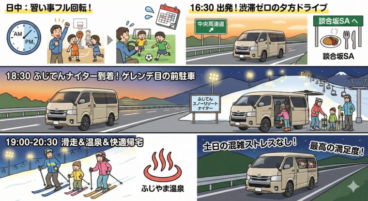 「習い事があるから……」と諦めていた冬の週末が、ナイターという選択肢一つで、こんなにも充実した親子の時間に変わります。