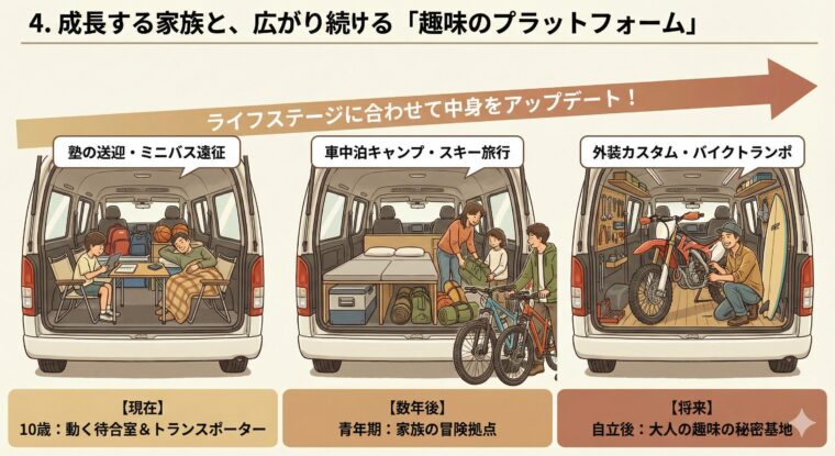 ハイエースは「空っぽの箱」だからこそ、その時々のニーズに柔軟に適応できます。