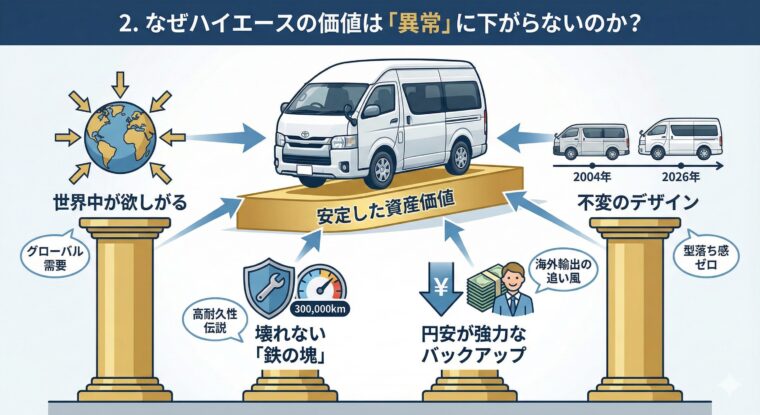 【2026年最新】ハイエースのリセールバリューが異常な理由。3年乗っても「差額」が少ない、賢い資産防衛術