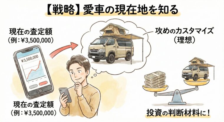 「売るため」ではなく、「今の価値がこれだけあるなら、あと50万円かけてガッツリ改造しても損はないな」という、攻めの判断材料にするためです。