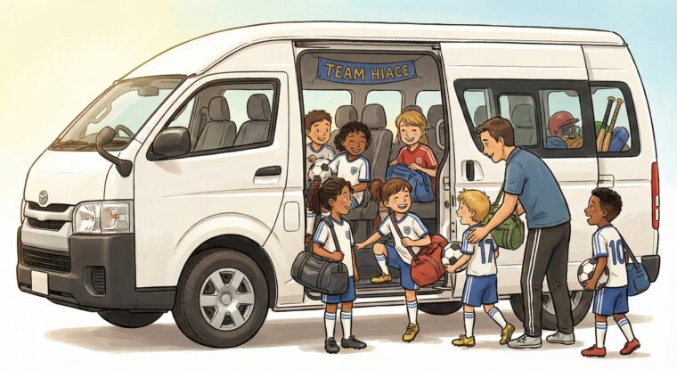 子供の部活の遠征時、ハイエースの広い車内はチームメイトたちの特等席。 「みんな乗ってけよ!」と声をかけ、賑やかに会場へ向かう。試合の合間、疲れた子供たちが冷暖房の効いた車内で束の間の休息をとる。