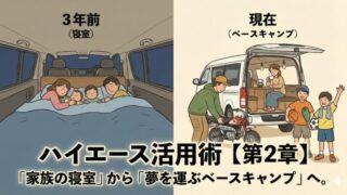 ソロ遊びでもファミリー遊びでもハイエースがとても活躍することはわかった。