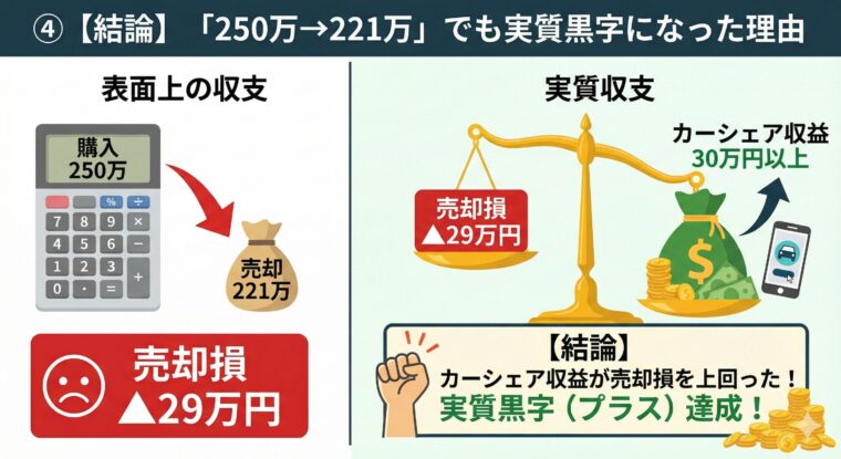 ④ 【結論】「250万→221万」でも実質黒字になった理由