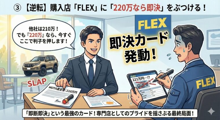 ③ 【逆転】購入店「FLEX」に「220万なら即決」をぶつける