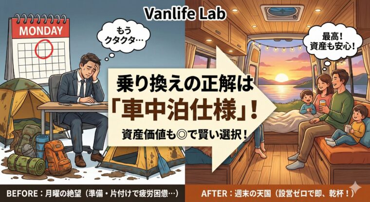 もしあなたが今、車の乗り換えを1ミリでも検討しているなら、普通のミニバンを選ぶ前に立ち止まってほしい。実は、「車中泊仕様の車」に乗り換えるだけで、あなたの週末と月曜日の体感は劇的に変わります。