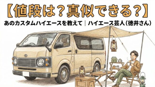 トレンド 【値段は?真似できる?】あのカスタムハイエースをいろいろ教えて|ハイエース芸人(徳井さん) 2023年2月7日 hohoge 先日放送されたアメトークでハイエース 芸人が特集されました!いろいろなタイプのハイエースが登場して、車中泊に興味を持たれた方も多かったので …