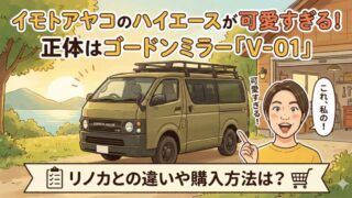 おすすめアイテム 【特定】イモトアヤコのハイエースが可愛すぎる!正体はゴードンミラー「V-01」。リノカとの違いや購入方法は? 2026年1月7日 hohoge YouTubeで話題!イモトアヤコさんの「新愛車」がセンスの塊だった ハイエース好きなら、もうチェックしましたか? イモトアヤ …