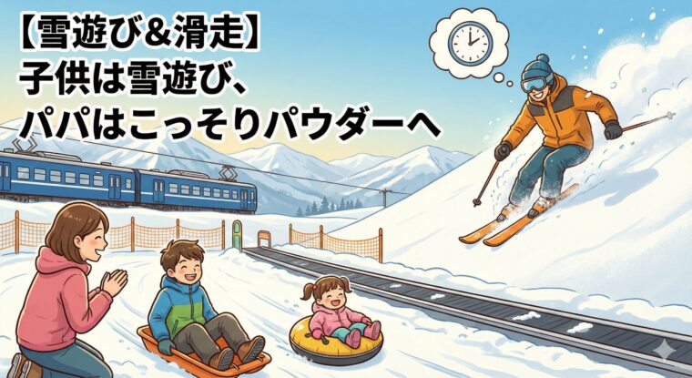 【雪遊び&滑走】子供は雪遊び、パパはこっそりパウダーへ